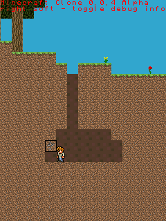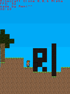 Всем привет! Долго сомневался, создать ли тему, всё-таки решился. Хотел представить вам свою разработку - клон Майнкрафта для обычных телефонов. Версия ещё сырая, делать начал совсем недавно. Графику брал откуда ни попадя (поэтому персонаж из Террарии =3).
